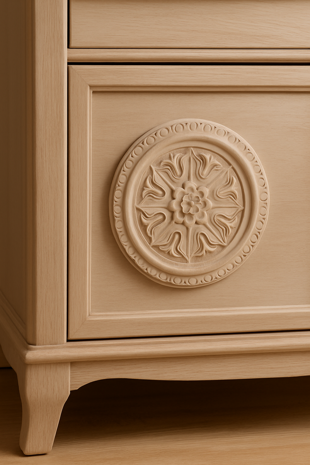 Aplikacje na meble mają jasny kolor. Można je pomalować na dowolny kolor.